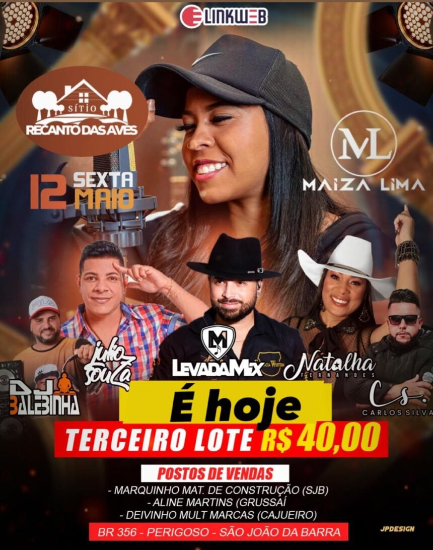 Nesta sexta-feira (12) acontecerá o esperado show da Maíza Lima, no Recanto das Aves, em São João da Barra. O evento é organizado por Júlio Souza promete animar ao público.…